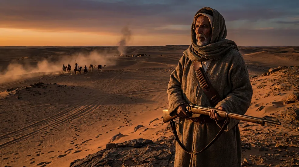عمر المختار. هذا الاسم وحده كان كافياً لإثارة الرعب في قلوب الجنود الإيطاليين. شيخ المجاهدين الذي رفض الاستسلام رغم كل شيء — رغم العمر، رغم الجراح، رغم فقدان الأصدقاء والأحباب واحداً تلو الآخر.